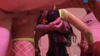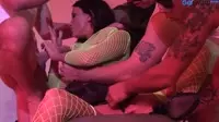 The scene begins with the four hard-bodied dudes, their cocks pulsating with anticipation for the wild orgy that's about to unfold before their eager eyes.The horny whore, unable to contain her lust, steps forward to join them in this dirty, filthy fantasy, as the room fills with a mix of adrenaline and testosterone.As the men gather around the insatiable slut, she expertly engages in an intense game of strip-tease, driving their desires to uncontrollable levels.The scene quickly turns from erotically charged foreplay into an all-out kinky free-for-all as the group sex session begins.The guys waste no time in plowing into her tight, dripping pussy, while the bitch receives their hard cocks with a hungry moan that reverberates through the room.Their sweat-drenched bodies entwine and move with fluid motions, each thrust sending shivers down the woman's spine.The sight of her being fucked from every angle drives the men into a frenzied, animalistic state as they lose themselves in this group orgy.In the midst of the wild fucking, one of the men grabs the whore's head and demands an all-out suckfest on his rock-hard cock.The cunt's mouth opens wide to accommodate his swollen member while her fellow co-conspirators continue their merciless pounding.Their DP sex becomes more intense, the woman's tight ass swallowing one hard cock after another, each one reaching for the farthest depths.The excitement only grows as the men engage in an erotic bukkake ritual, coating her face and tits with hot cum, while a blowbang ensues that leaves the audience gasping for air.The room fills with guttural groans, and loud slapping noises from their unrelenting fucking.The woman's cunt and ass stretch to accommodate their insatiable needs, her clit pulsating under their rough attention.Amidst the chaos, another man steps forward and offers his hand for a tantalizing handjob that drives the whore to the edge.Her body quivers uncontrollably as she climaxes repeatedly, reaching an entirely new plane of sexual ecstasy.As the men continue their relentless pursuit, they position themselves in a manner that allows them to enjoy a thrilling double penetration while simultaneously offering a tantalizing view of her buns being stretched wide open.The horny whore is taken from behind as she spreads her ass for the DP, allowing even more men to take advantage of her sexual availability.She cries out in delight as another man enters her mouth, feeding her his hard cock and allowing her to explore the realms of blowjob artistry.As the wild orgy progresses, the men swapping positions, one by one, she begs for even more.The fucking never ceases, the room alive with the sound of cocksucking, pussy pounding, and the occasional slap of ass as the bitches in this room continue their kinky sexual escapades.Her tits, covered in cum from the previous encounters, glisten under the dim lighting, a testament to her insatiable sexual appetite that allows these men to push beyond their limits and explore the true depths of their perversions.As the group orgy comes to an end, they collapse in exhaustion, drenched with sweat and cum.Their faces show satisfaction, relief, and perhaps even a hint of longing for more as they all catch their breath from this unforgettable encounter.