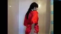 In a dimly lit room, our stunning brunette is all wrapped up in her red bathrobe, anticipating the moment of taking it off to unveil herself for the world.The erotic tension in the air rises as she slowly begins to undress.Her hands glide over her body, teasingly touching and stroking, creating a magnetic pull towards the fantasy of showering in delight.Her breath is heavy with desire, and with each stroke, every bead of sweat on her forehead reflects her yearning for pleasure.The anticipation builds, as if time is standing still just to enjoy the moment.The room fills with an alluring scent of passion that only grows stronger as her eyes fixate on the thought of being submerged in hot and wet waters.Suddenly, she decides to take off the bathrobe, letting it fall on the floor behind her as if a veil between two worlds is ripped apart.Naked, she stands there with her eyes closed, taking in the feeling of freedom that washes over her skin.She begins to move towards the bathroom, leaving a trail of anticipation and sensuality behind her, every step an invitation for an erotic adventure.Once in the bathroom, her hands run along the contours of her body, creating an enticing visual for anyone who dare watches.The water is already set at just the perfect temperature, beads forming on the surface as a warm mist begins to fill the air.She stands before it, taking a moment to soak in the sight and allow herself to truly feel the desire building up within her.Her hands finally touch the surface of the water, feeling the contrast between the heat and wetness.Her breathing quickens as she feels the first droplets of the shower upon her skin, her nipples hardening at the touch of the cool water that dances upon them.As she steps deeper into the tub, she slowly begins to explore every sensation that the warm waters have to offer, gently stroking her body with soapy fingers, feeling herself ache with longing for more intimacy.The sound of the water rushing against the porcelain only adding to the ambiance of this erotic escapade.Slowly but surely, she moves her hand lower towards her womanhood, each stroke eliciting gasps from deep within her throat, her breathing now erratic and passionate, matching every beat of her heart.The anticipation is almost unbearable as the brunette tugs at the strings of her desire, her mind painting pictures of her in blissful pleasure and the warmth of her own touch.As she reaches her climax, each surge of pleasure that surges through her veins causes a tremble within her core.It is as if the heat of passion is igniting within her, creating a whirlwind of desire and lust that leaves her breathless in the afterglow of her ecstatic journey.And with the final waves of satisfaction washing over her, she basks in the afterglow, feeling cleansed, refreshed, and ready for any sexual adventure that may come her way.The red bathrobe brunette has successfully sought out her showering delight in hot and wet pleasures, and it is an experience she will never forget.